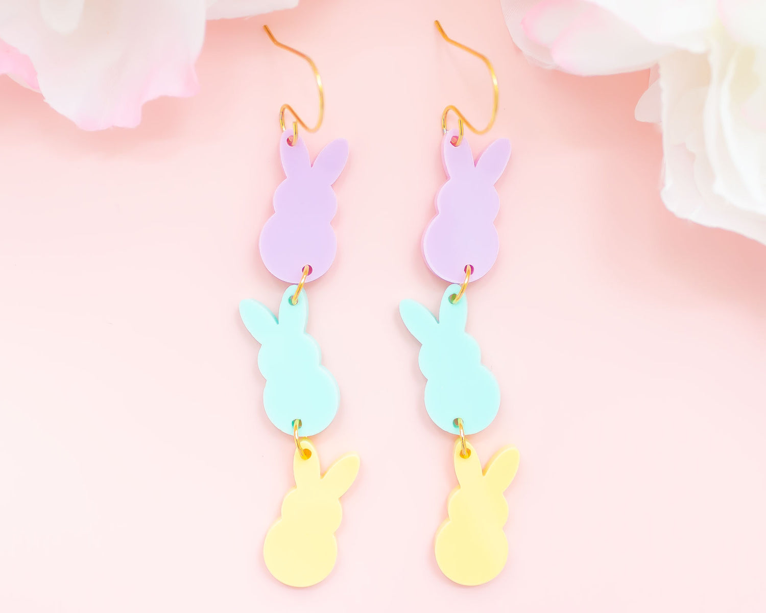 These bunny earrings are the perfect accessory to add an extra pop to your outfit! Acrylic is very lightweight so you can enjoy large, statement earrings comfortably all day.