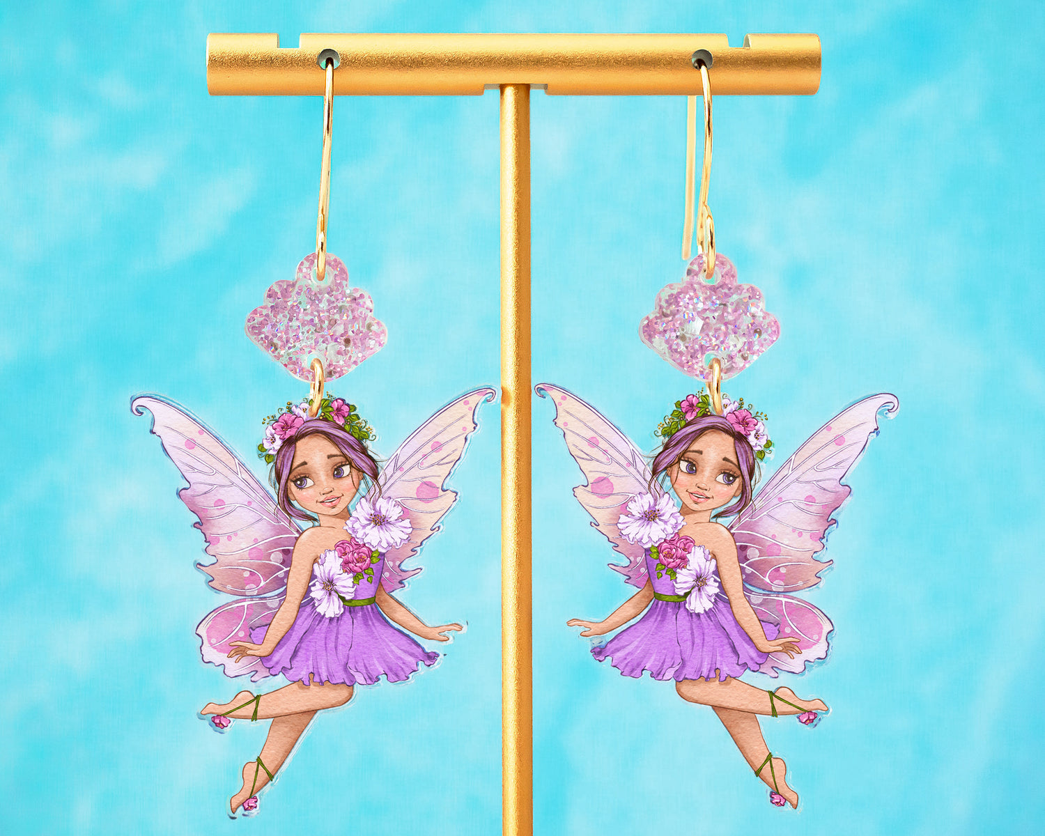 These light-weight fairy earrings are the perfect statement earrings to add an extra pop to your outfit! Acrylic is very lightweight so you can enjoy large, statement earrings comfortably all day.